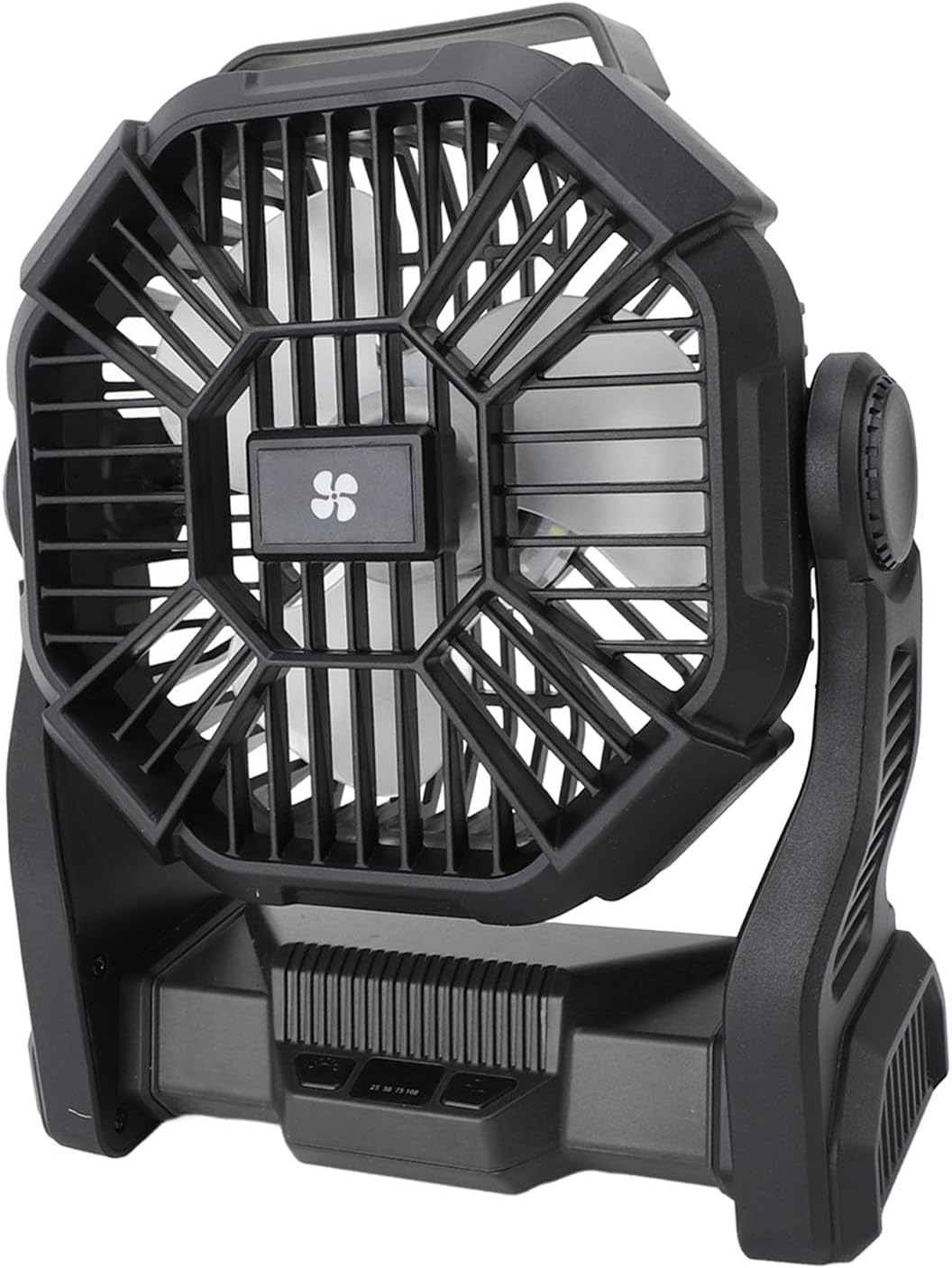1. PREMIUM PERFORMANCE: Featuring the latest brushless motor technology and high performance ultra thin fan blades, this fan provides you with excellent airflow and minimal noise. With one USB A and one TYPE C port, it can be used as an emergency power source for cell phones, flashlights and laptops. 2. 10400MAH CAPACITY BATTERY: This camping fan has a built in 10400mAh rechargeable battery that can work continuously for 8‑36 hours at four wind speeds, providing you with a long lasting cooling experience. In addition, it supports working while charging. 3. CAMPING FAN WITH LED LANTERN: The portable fan has 3 brightness settings, you can adjust different brightness according to different scenarios, ideal light source for night camping or hiking. 4. MULTIFUNCTIONAL DESIGN: The outdoor fan's outlet angle can be manually rotated 90 degree and has a 360 degree hook function, allowing you to blow the breeze where you need it. Made of sturdy and firm ABS material for long lasting use. 5. EASY AND CONVENIENT: The overall size of the portable fan is small enough to fit easily into a backpack for carrying and storing without extra burden. It can be easily hung on a tent, tree branch or simply placed on a desk at home or office. Specification: Item Type: Outdoor Camping Fan Material: ABS Weight: Approx. 910g/32.1oz Size: Approx. 21x9x26cm / 8.3x3.5x10.2in Battery Type: With Built In Lithium Battery (Shipped with Built In Lithium Battery) Battery Capacity: 10400 mAh How to Use: Direct use. PackageList: 1 x Fan 1 x USB Cable 1 x English User Manual Note: Manual measurement please allow some error.